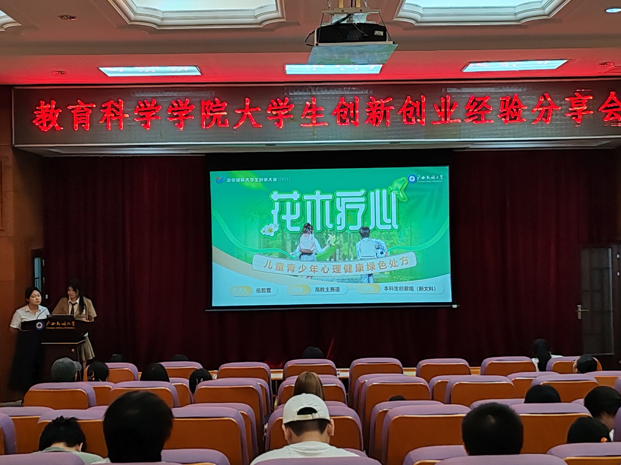 “花木疗心”创新创业项目组谢洋和“童心同行”创新创业项目的负责人李朔琪分别向大家介绍了团队组建、项目过程管理、创业经验等方面,她们都表示创新创业的项目活动不仅为学生提供了一个学习交流的平台,还为他们的未来发展奠定了坚实的基础。
