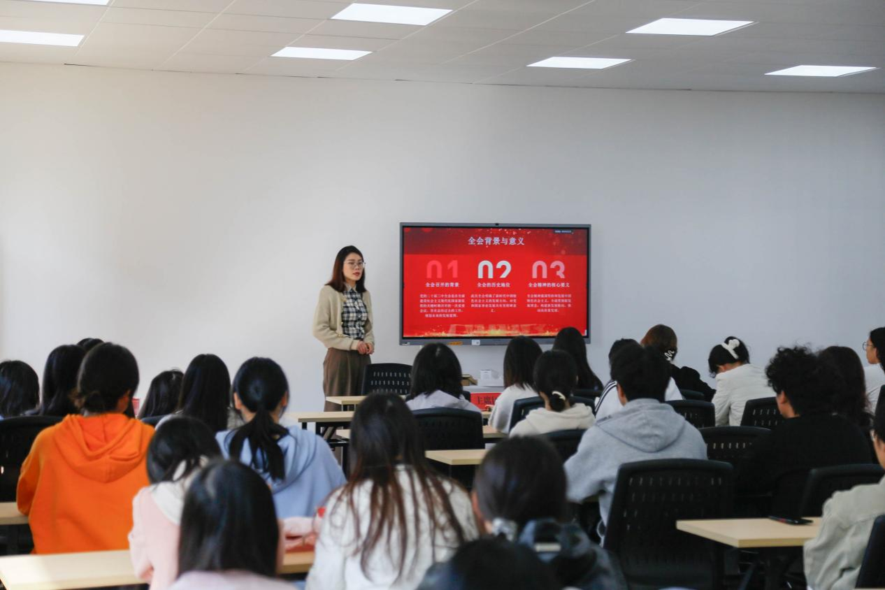 随后,王卓老师带领团学理事们深入学习党的二十届三中全会精神。详细阐释了党的二十届三中全会精神的核心要义和实践要求,明确新时代青年工作的方向和任务,引导团学干部们主动将学习成果转化为推动青年工作的实际动力。同时,王老师还结合实际案例,分享了团组织活动的策划与执行技巧,为团干部们提供了宝贵的经验和启示。大家纷纷表示,将认真学习和贯彻党的发展理念,明确未来的发展方向和目标,不断提升自身能力,积极投身学院团学工作。