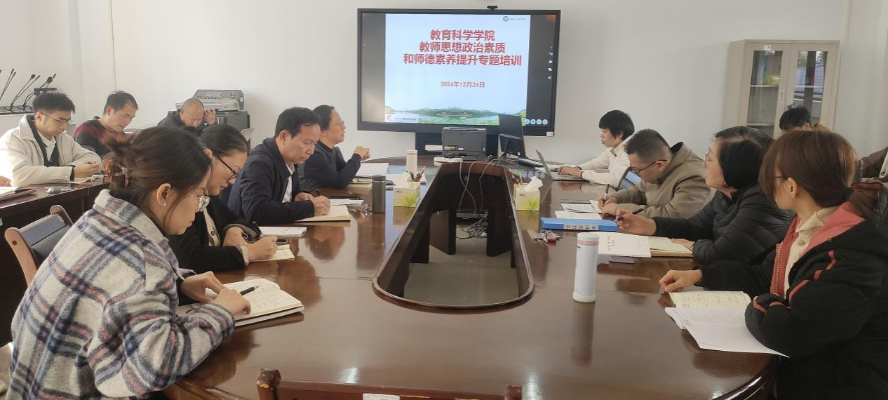 12月24日下午,乐天使fun88登录入口在至善楼409室开展教师思想政治素质和师德素养提升专题培训,培训由学院院长张进清教授主持,学院全体教职工参加培训。