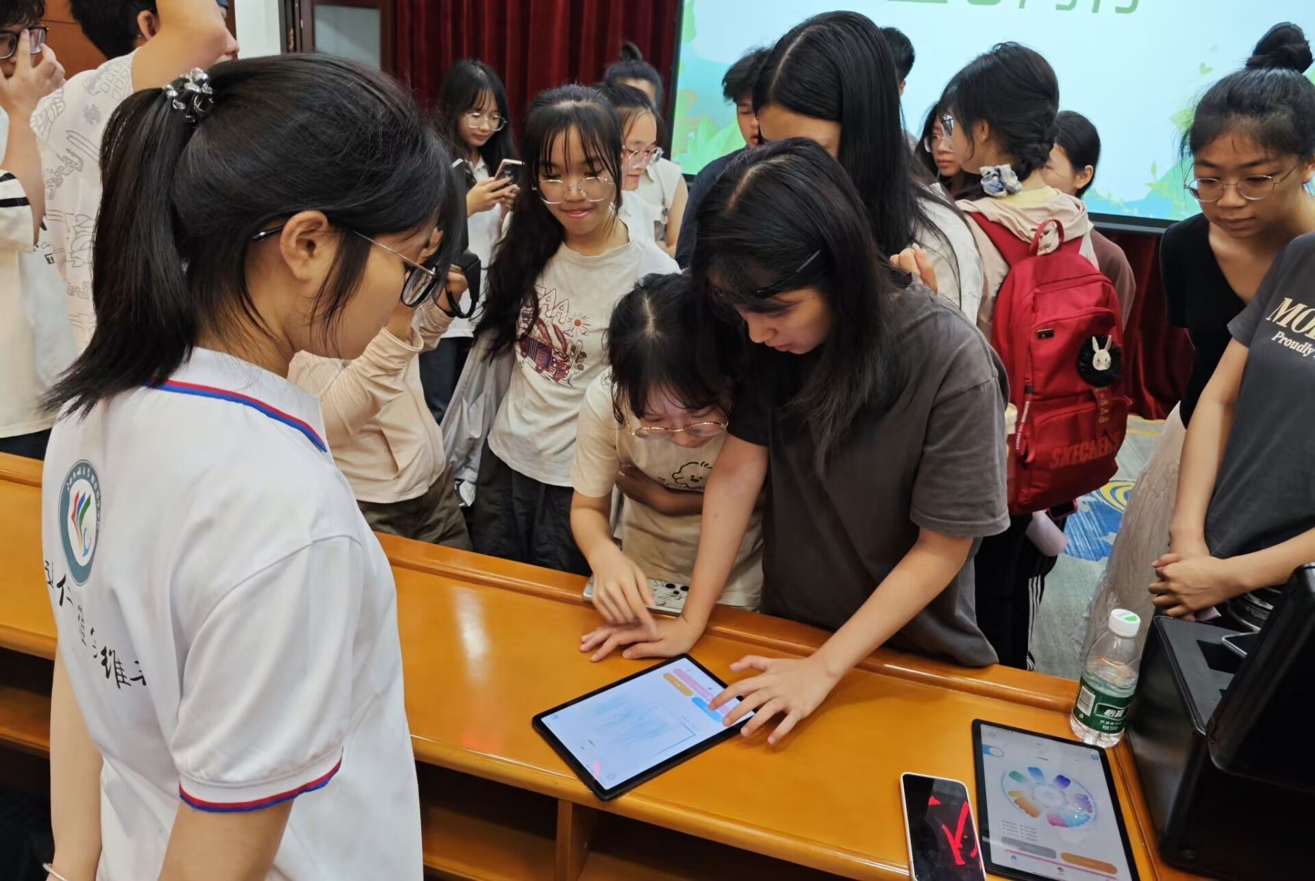宣讲会后,同学们积极体验了数字化的心理健康产品,是一套集成了头戴式脑波测量仪、智能平板和定制后台管理系统的先进设备。