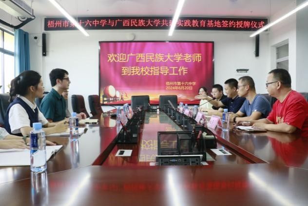 在签约授牌仪式上,梧州市第十六中学、第十七中学领导分别就学校的发展现状、办学特色、文化建设、未来发展等方面做了全面的介绍,并对我校为中小学输送优秀学子表示高度赞赏。乐天使fun88登录入口侠牧副院长表示,将以此次实践教育基地签约为契机,深入推进高校与中小学资源共享,合作发展,协同培养更多全面发展的优秀人才。在热烈的掌声中,双方共同进行了“实践教育基地”的签约仪式,开启了两校协同育人合作的新篇章。