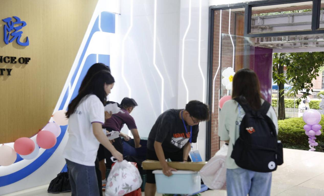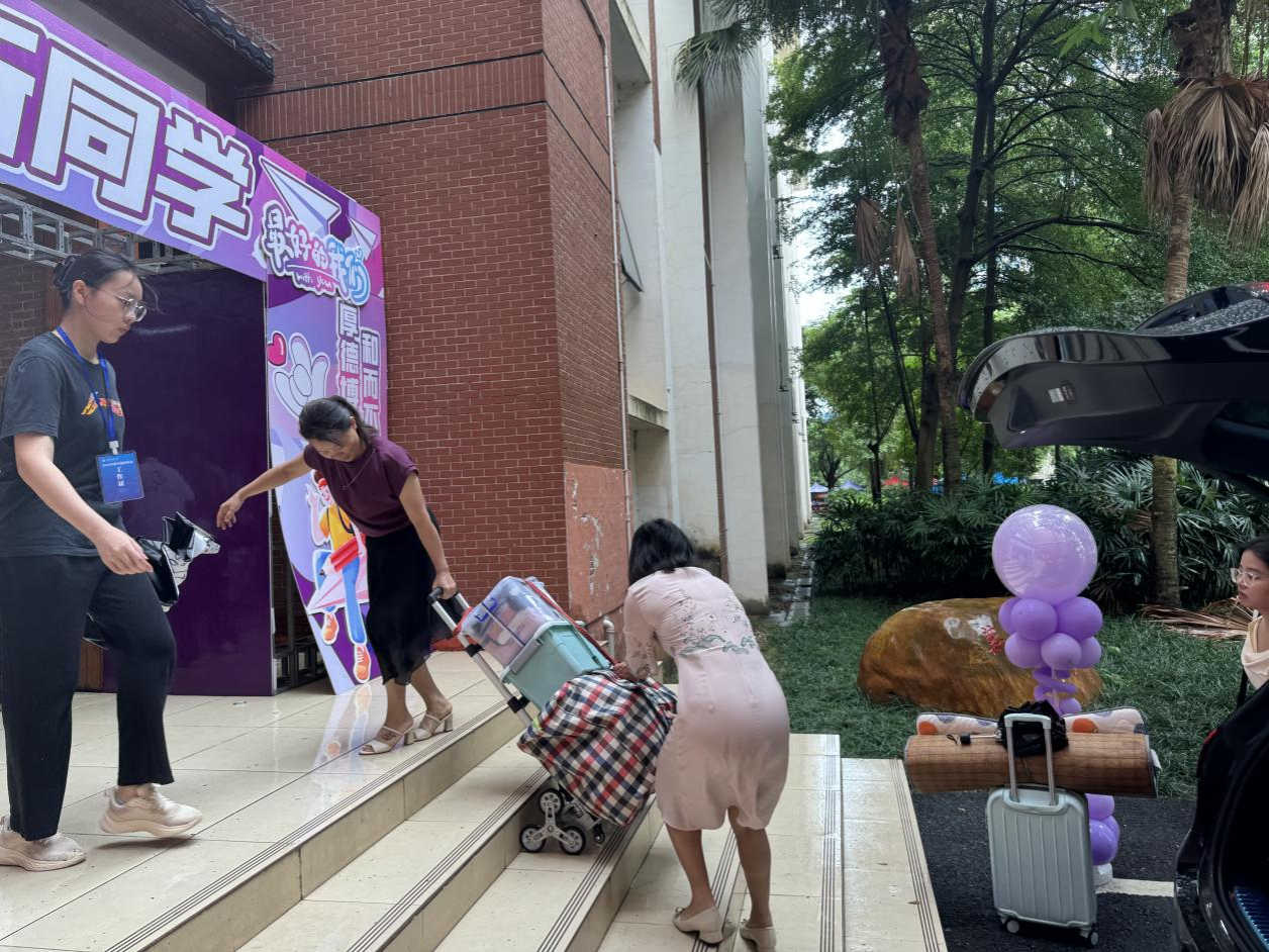教师党员积极投身于迎新工作,帮助乐天使fun88登录入口学子搬运行李,切实为学生办实事、解难题。党员教师和行李搬运组的学生志愿者无缝对接、通力配合,克服了恶劣天气的影响,为新生提供了稳定、有序的报到环境。场面温馨、动人!