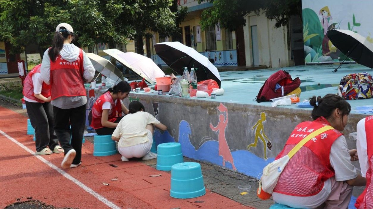 “三下乡”期间,团队来到东兴市京族学校小学部,把精心设计并制作的民族团结、心理健康、总体国家安全观等一系列主题鲜明的宣传海报张贴在校园宣传栏。作为留给边境学校的一份“礼物”,团队成员还对校园文化墙面进行绘画装饰,进一步突出本次活动的核心价值和目标。志愿者化身暖心小画师,五颜六色的画笔在墙壁上留下多彩的图片,为这所京族小学增添新光彩,一幅幅主题鲜明的绘画创作连通了东兴市京族学校与FUN88乐天使在线登录学子们的心。