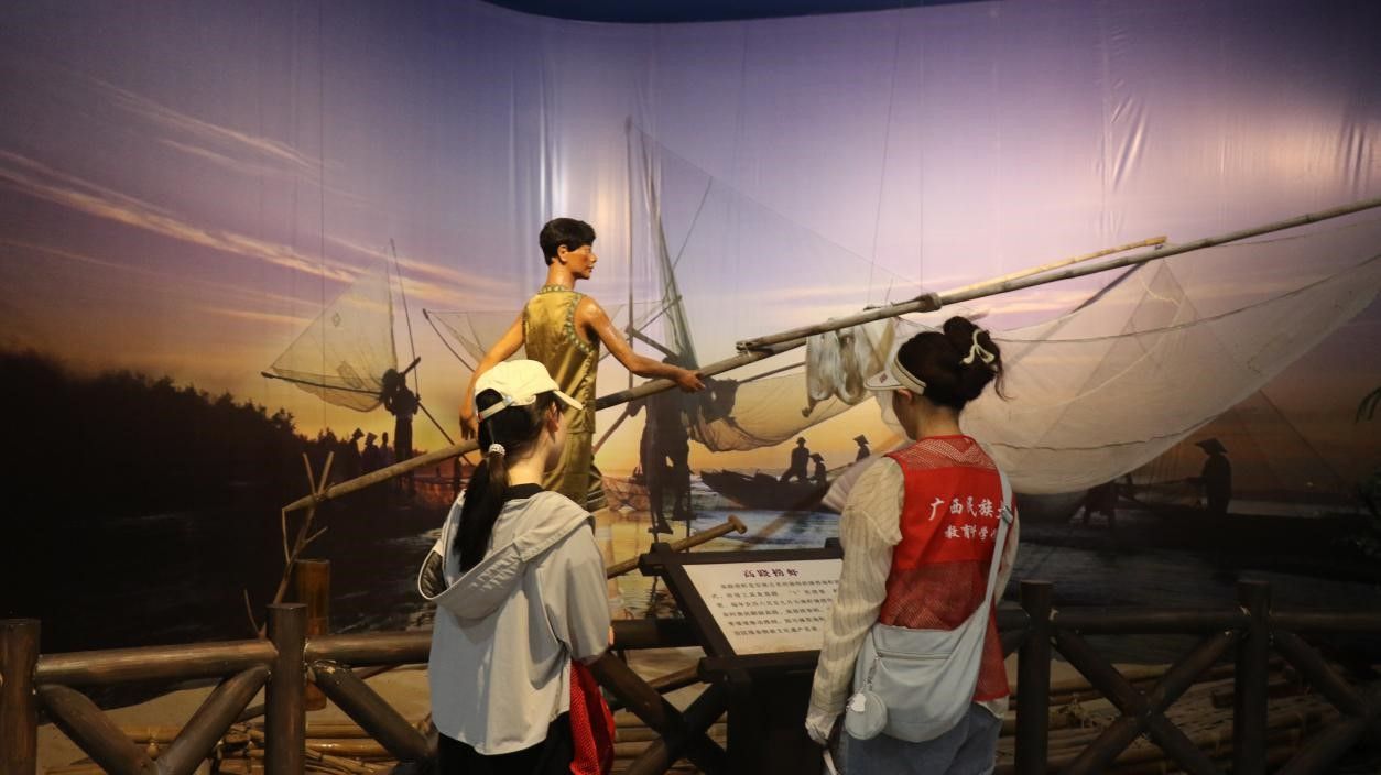 当天下午,同心同行志愿服务队队员前往爱国主义教育基地——京族博物馆。京族博物馆不仅是了解京族历史和文化的重要场所,更是我们了解京族群众日常生活的缩影。博物馆内陈列的每一件展品仿佛都在像我们诉说着京族人民的智慧和历史。通过丰富的展览,我们学习京族的起源、形成、发展以及他们在历史长河中所经历的变迁和挑战。值得一提的是独弦琴展区。独弦琴作为京族的传统乐器,其独特的演奏方式和音乐风格,独弦琴非遗传承人现场演奏独玄琴,那悠扬的琴声,让我们的心灵得到了滋养。此次实地走访,同学们收集到了许多京族文化的资料,深入了解京族的饮食文化、赶海文化和服饰文化,为后续的研究和文化推广工作提供了坚实的学术支持。