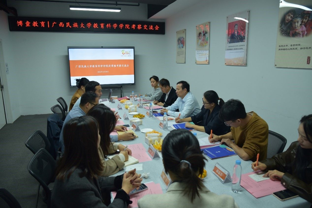 活动中,双方进行了深入的座谈交流。广西博童教育发展有限公司总经理、广西托幼产业产教融合共同体理事长贵尚明详细介绍了公司的发展历程、业务范围、人才需求及发展理念。他表示,博童教育是一家专注于幼儿领域的研究型专业服务机构,致力于为院校、幼儿园和托育机构提供空间设计、教育设备、课程资源、专业建设和师资培训的等多维一体的整体解决方案。近年来,公司推进政、产、教、学、研、用深度融合,是行业组织的核心成员单位,也是自治区级产教融合型试点企业。