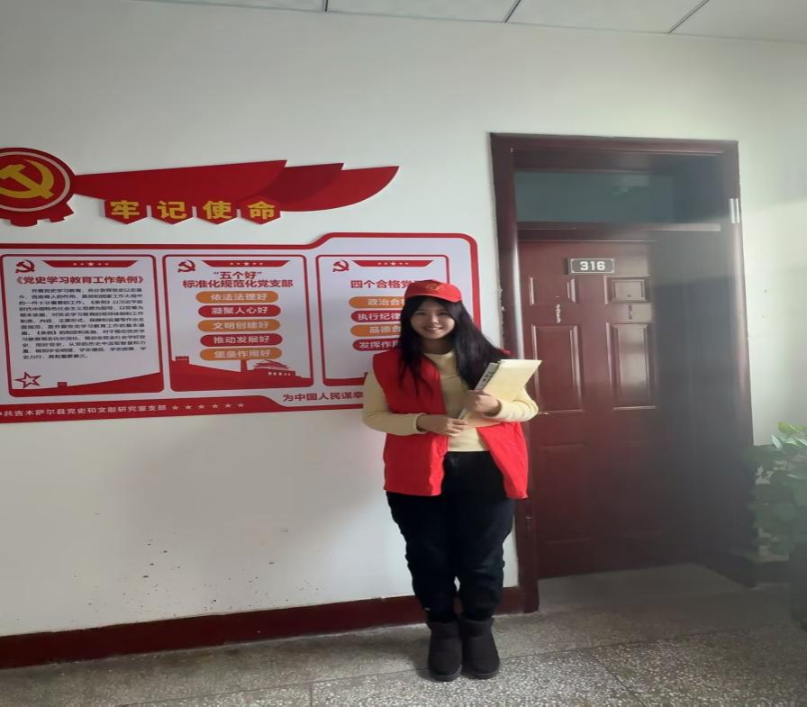 同时,袁欣悦还是志愿服务的组织者。她带领着志同道合的伙伴们走进社区,为孤寡老人送去温暖与关怀。陪老人们聊天、帮忙打扫卫生、组织文艺表演,让老人们感受到社会的关爱。他们还奔赴大自然,开展环保公益行动,通过清理垃圾、宣传环保知识等方式,为家乡的生态环境建设贡献力量。此外,他们深入乡村,关注乡村教育发展,为孩子们送去学习用品,开展课外辅导和兴趣培养活动,点亮乡村孩子的梦想。作为青年发展调研员,袁欣悦围绕吉木萨尔县域青年的就业、创业、文化生活等方面展开全面调研,收集大量一手数据。通过对这些数据的分析整理,为团委制定青年发展规划提供了坚实依据。在协助团委工作人员办公时,她认真负责地整理资料,高效完成各项任务,保障了各项工作的顺利开展。