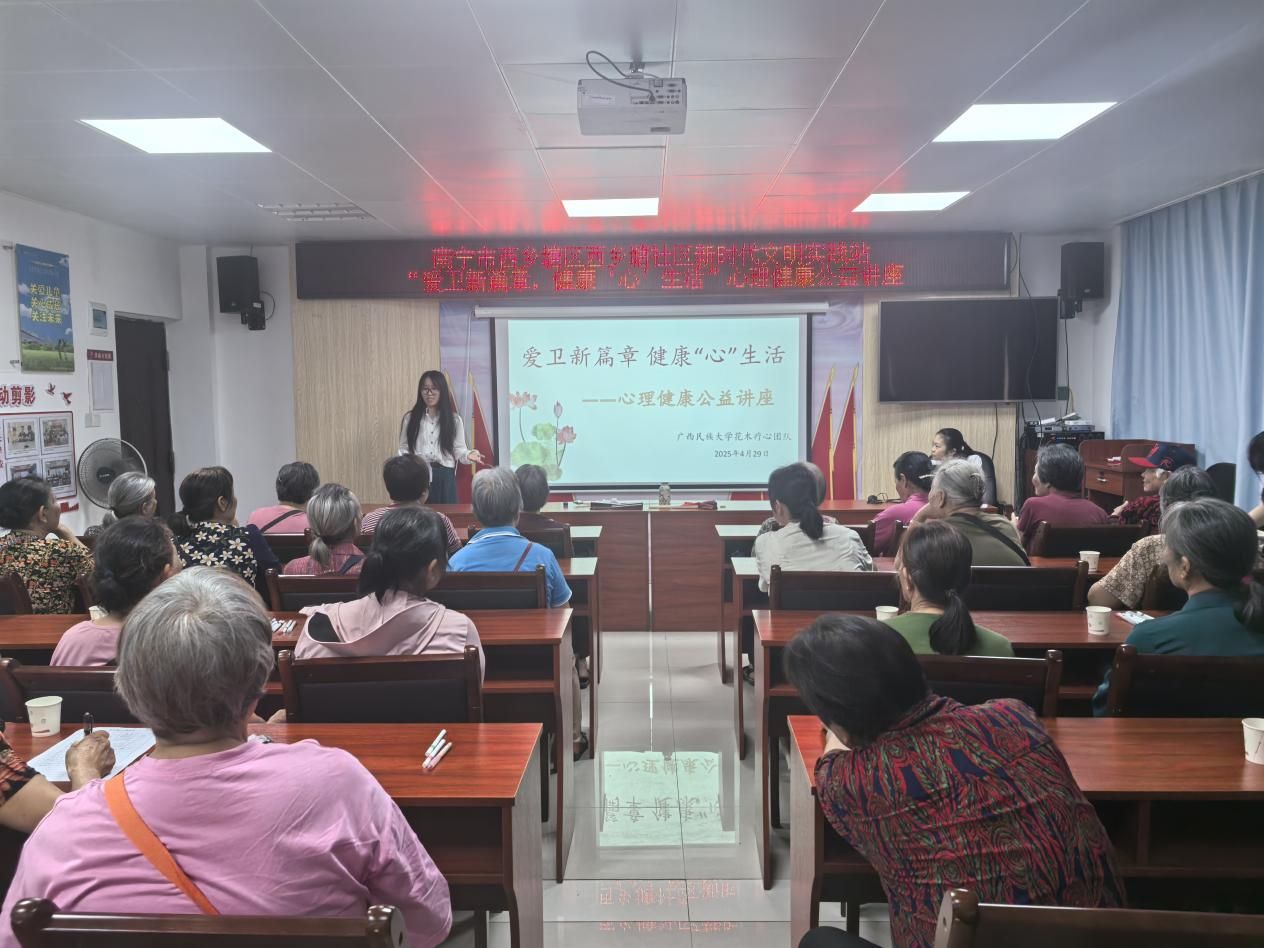 2025年4月29日,FUN88乐天使在线登录“花木疗心”团队走进西乡塘社区,为社区老年人举办了一场主题为“爱卫新篇章,健康‘心’生活”的心理健康公益讲座。此次活动旨在关注老年人心理健康,提升他们的生活幸福感,同时也引发了社会对老年群体心理关怀的进一步思考。